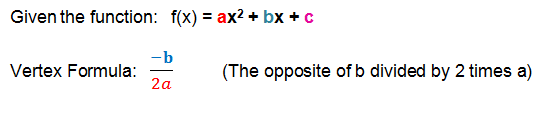 The vertex formula is used when you must find the vertex (minimum or maximum point) of the parabola.