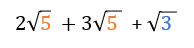Notice how in this example, we can add the two square roots that have a radicand of 5. The square root of three is not a like term, so it can not be combined.