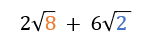 Notice in this next example that 2 times the square root of 8 can be simplified to 4 square roots of 2 and then this creates like terms that can be added together.