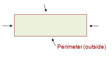The perimeter of a figure is the sum of the length of its sides. This is the length around the outside of the figure.