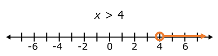 The expression says that x is greater than 4. This means that the solution set contains all numbers greater than 4.