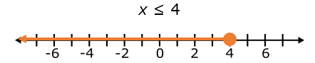 The expression says that x is less than or equal to 4. This means that the solution set contains 4 and all numbers less than 4.